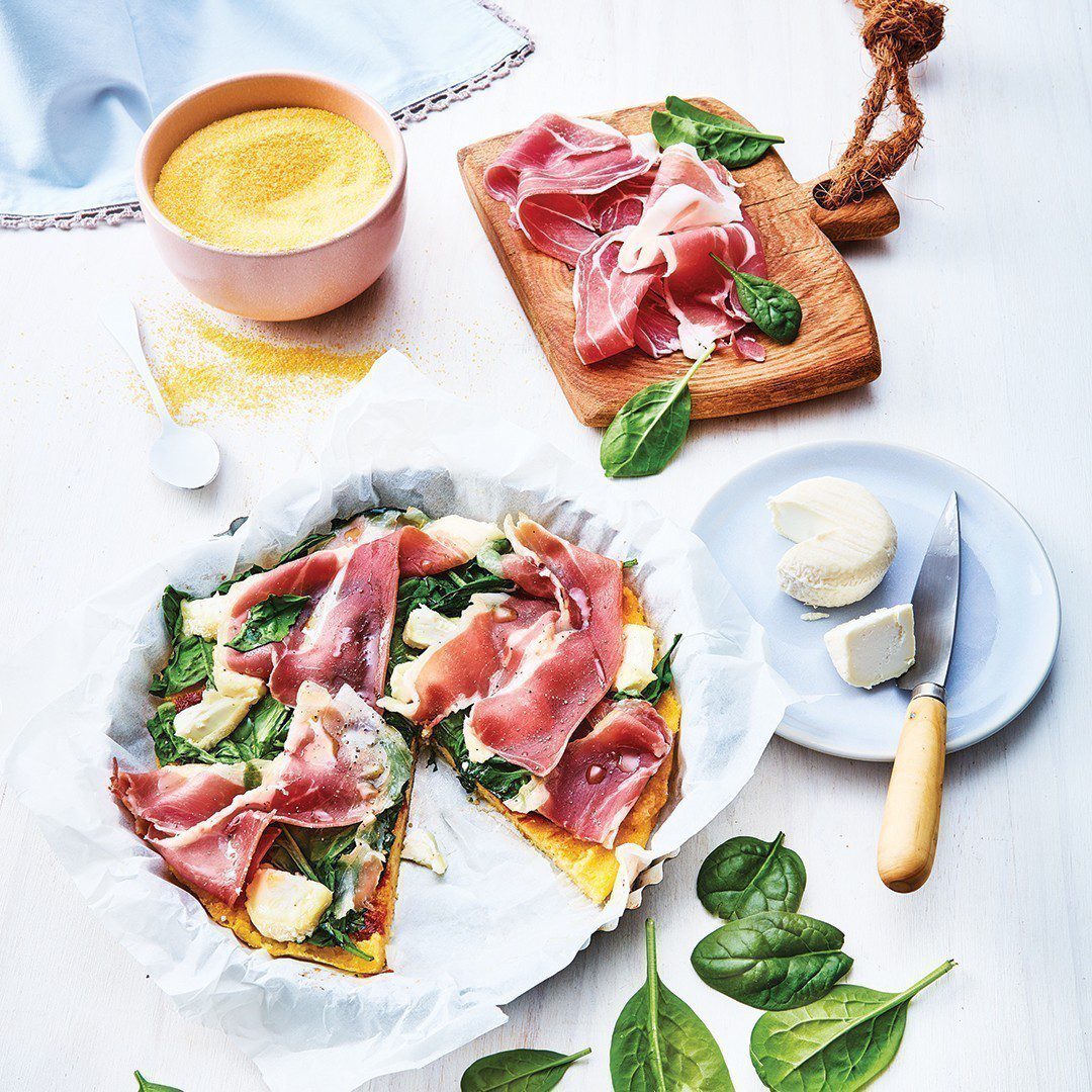 Tarte de polenta tomates séchées et jambon cru