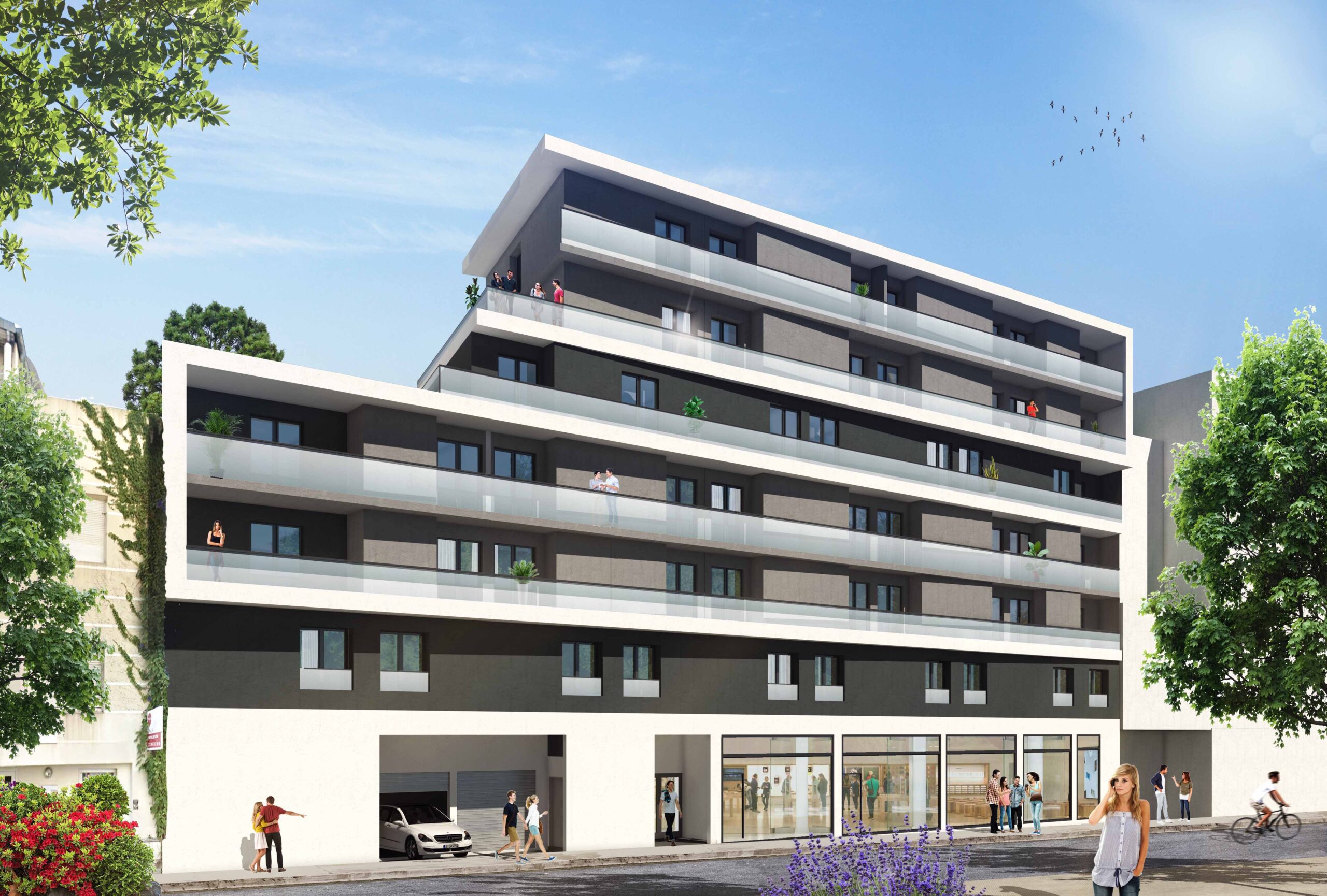 Les appartements sont spacieux (superficie moyenne de 23m²) et la plupart disposent de balcons et/ou d’un stationnement.