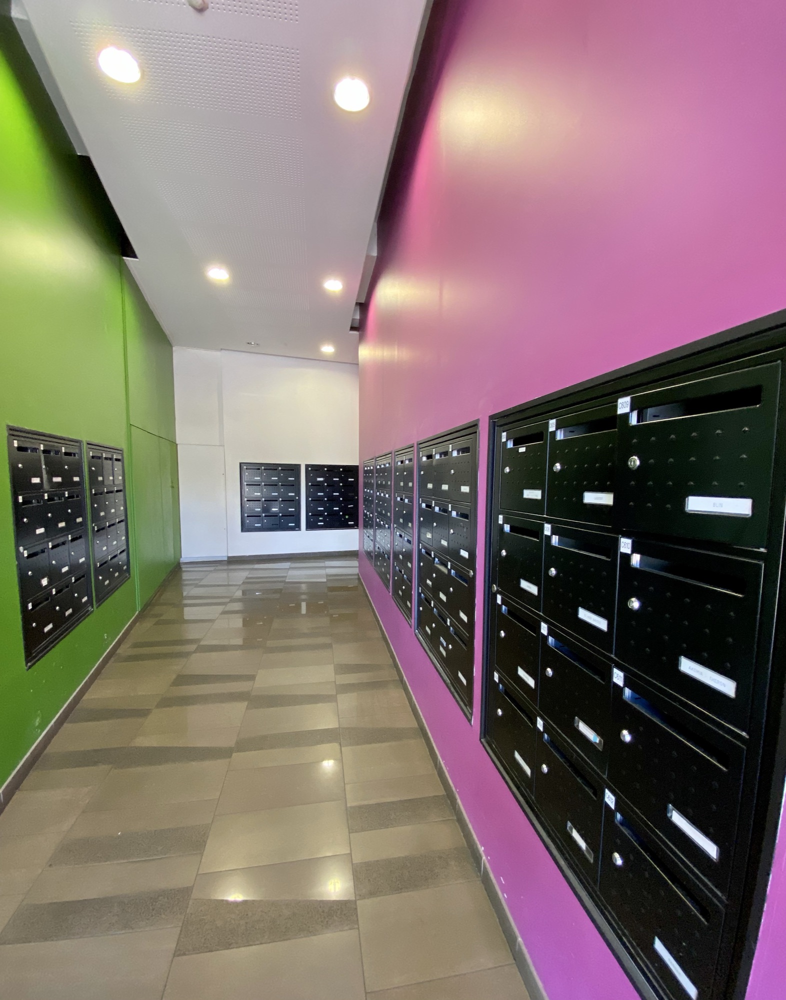 Cette résidence est composée d’appartements T1 et T2. Elle dispose d’une entrée et de parkings sécurisés ainsi que de plusieurs commerces en rez-de-chaussée.