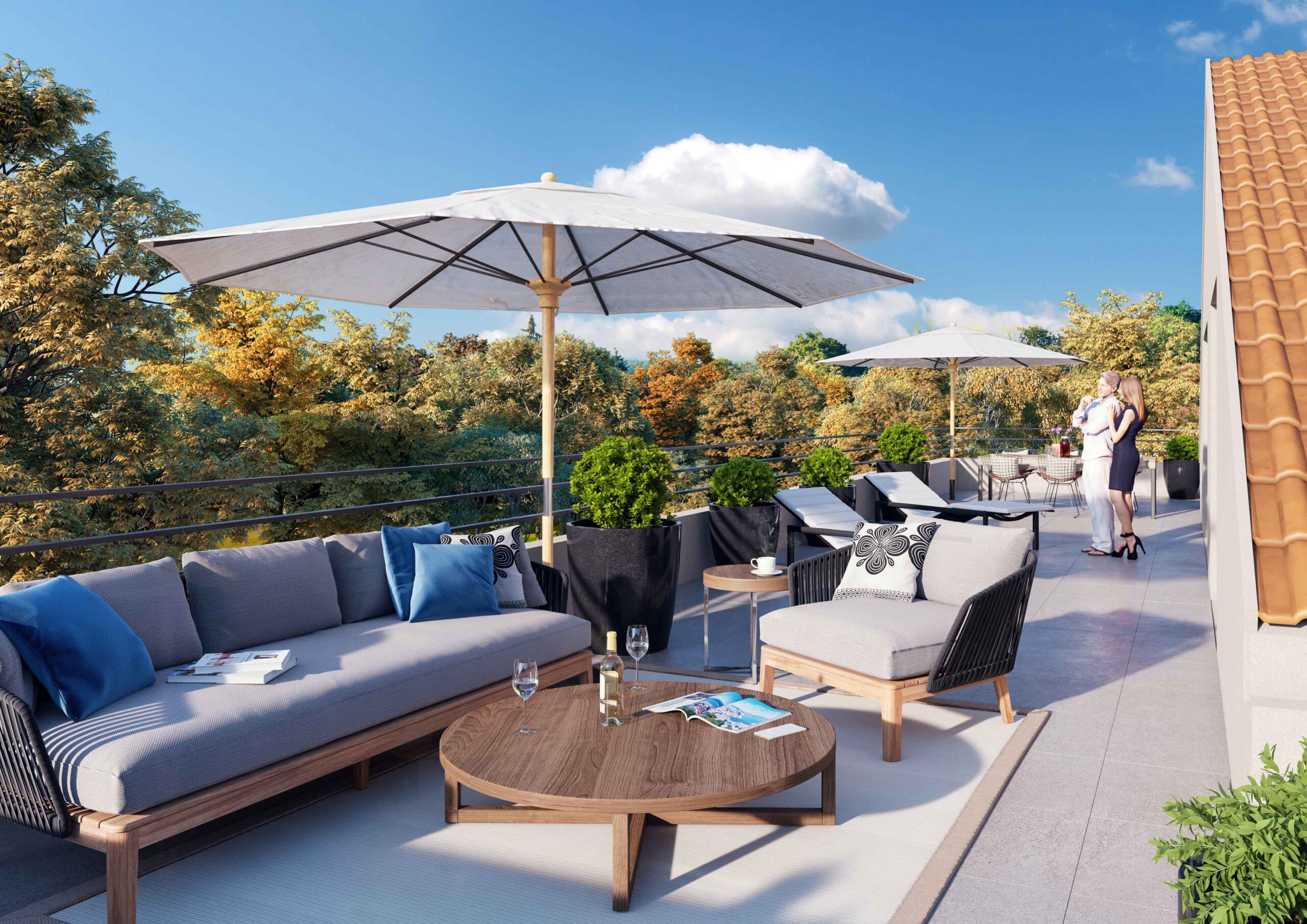 Les appartements en rez-de-chaussée disposent de terrasse ou jardin privatif tandis que de vastes balcons ou terrasse, s’ouvrent sur la nature environnante et prolongent les intérieurs en étage.