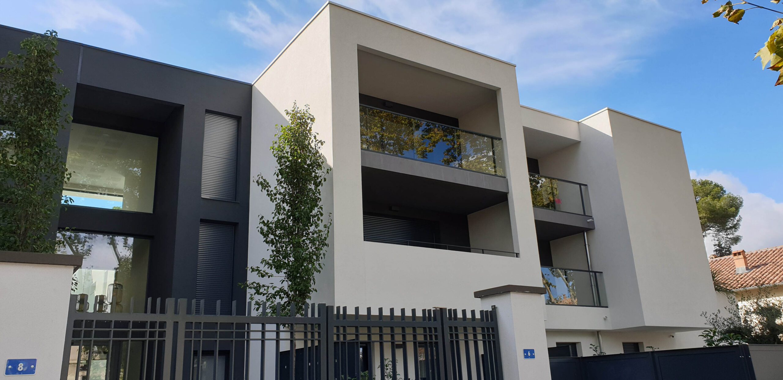 La composition architecturale de la façade, sculptée de pleins et de vides, est particulièrement soignée.