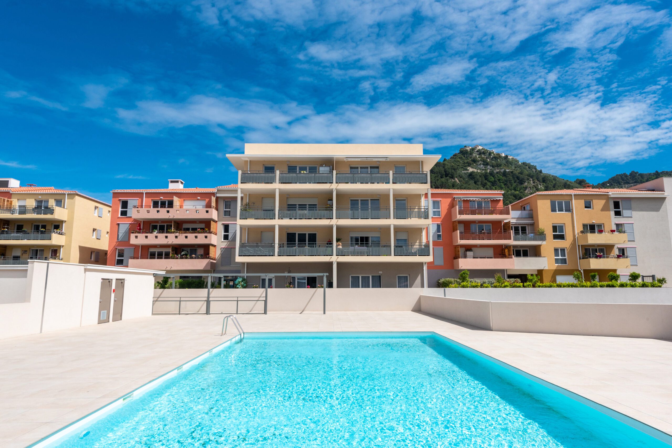 L’architecture moderne et chaleureuse offre de grands espaces ouverts sur le paysage environnant et sur un cœur d’îlot agrémenté d’un jardin d’agrumes, d’une grande piscine et d’un boulodrome accessibles à tous les résidents.